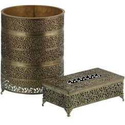 سطل زباله و جا دستمالی پیوتر گرد طلایی
