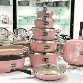 سرویس قابلمه ام جی اس (MGS) 22 پارچه چدن گرانیت صورتی