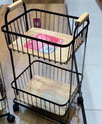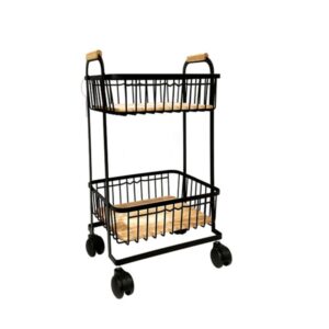 سبد سیب زمینی و پیاز راز دو طبقه مشکی چوبی