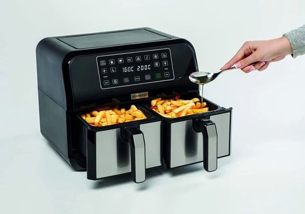 سرخ کن کنوود مدل HFM75 با بهره مندی از برنامه «dual cook» قادر به پخت همزمان هر دو سبد می باشد؛ همچنین این دستگاه، قابلیت استفاده از دو برنامه ی متفاوت برای هر سبد با پایان همزمان را «sync finish» دارد.