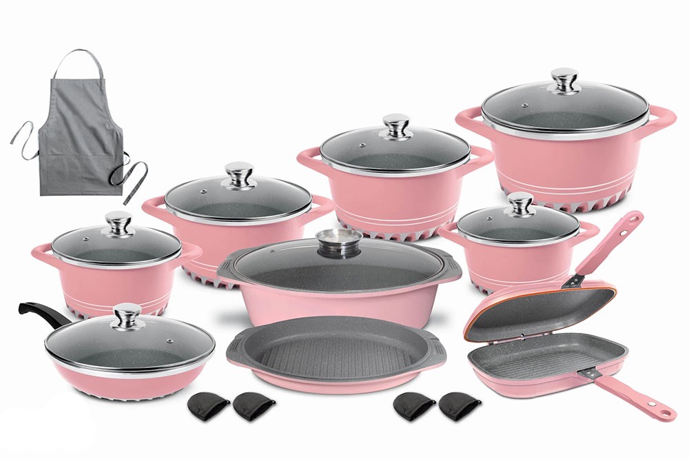 سرویس قابلمه ام جی اس (MGS) 22 پارچه چدن گرانیت صورتی