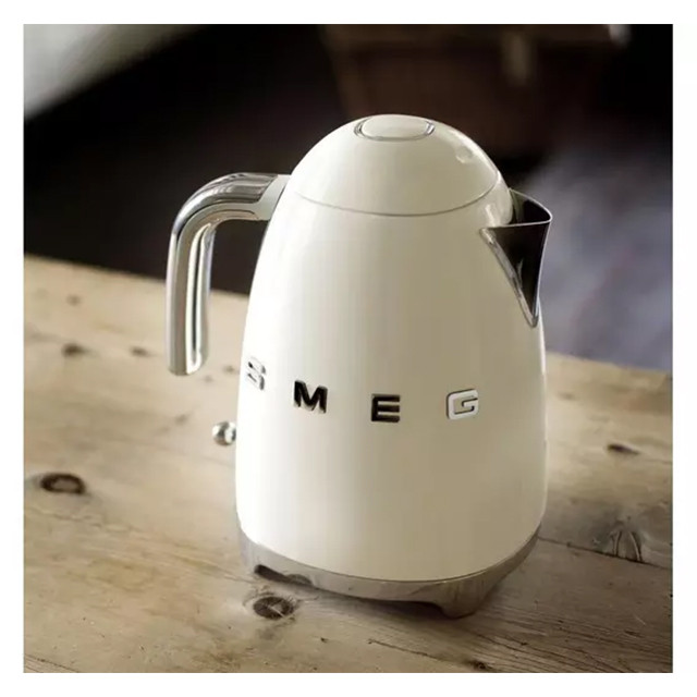 شرکت اسمگ به عنوان یکی از لوکسترین با کیفیتترین شرکتهای سازندهی لوازم خانگی کوچک و بزرگ شناخته میشود. این شرکت با طراحی منحصر به فردی که دارد امضایی کاملاً مختص به خود در ساخت محصولاتش دارد. این منحصر به فرد بودن به گونهای است که هر محصول شرکت اسمگ از دور قابل تشخیص است و میتوان به سادگی گفت که در شرکت اسمک ساخته شده است. در ادامه به معرفی کتری برقی اسمگ مدل KLF03 میپردازیم. کتری برقی اسمگ مدل KLF03 از استیل ضد زنگ طراحی و ساخته شده است که در مقابل رطوبت و ضربه بسیار مقاوم است و علاوه بر این ظاهری جذاب و مدرن به آن بخشیده است. البته اگر توجه کنیم خواهیم دید که استیل به کار رفته در این کتری برقی اسمگ به غایت با کیفیت بوده و جلادهی آن به زیبایی این محصول افزوده است. به مانند دیگر محصولات شرکت اسمگ این کتری اسمگ KLF03 نیز در رنگهای مختلف و گوناگون ارائه میشود تا تمامی سلایق بتوانند رنگ دلخواه خود را انتخاب نمایند. ظرفیت این کتری برقی برابر با ۱.۷ لیتر است. این یک ظرفیت استاندارد میباشد که برای یک خانوادهی متوسط به بالا طراحی گشته است. با توجه به توان بالای این کتری برقی smeg مدل KLF03 میزان آبی که در داخل آن ریخته میشود در کمترین مدت زمان به جوش میآید. توان ۲۴۰۰ واتی این کتری اسمگ قدرت بالایی برای به جوش آوردن آب به آن بخشیده است بیشتر دستگاههایی که با آب سروکار دارند دارای نشانگر برای نشان دادن سطح آن میباشند. ولی در کتریهای برقی شرکت اسمگ این نشان دادن به صورت بسیار شیک و منحصر به فرد است.