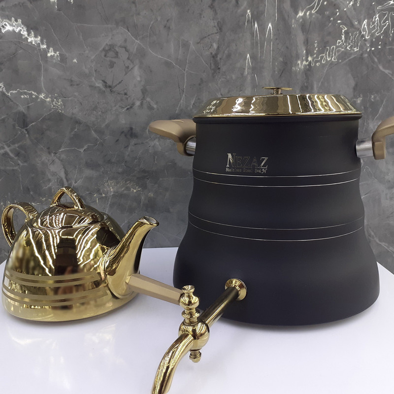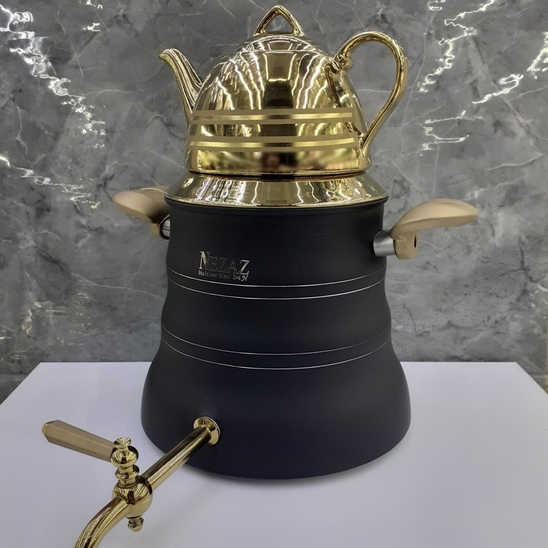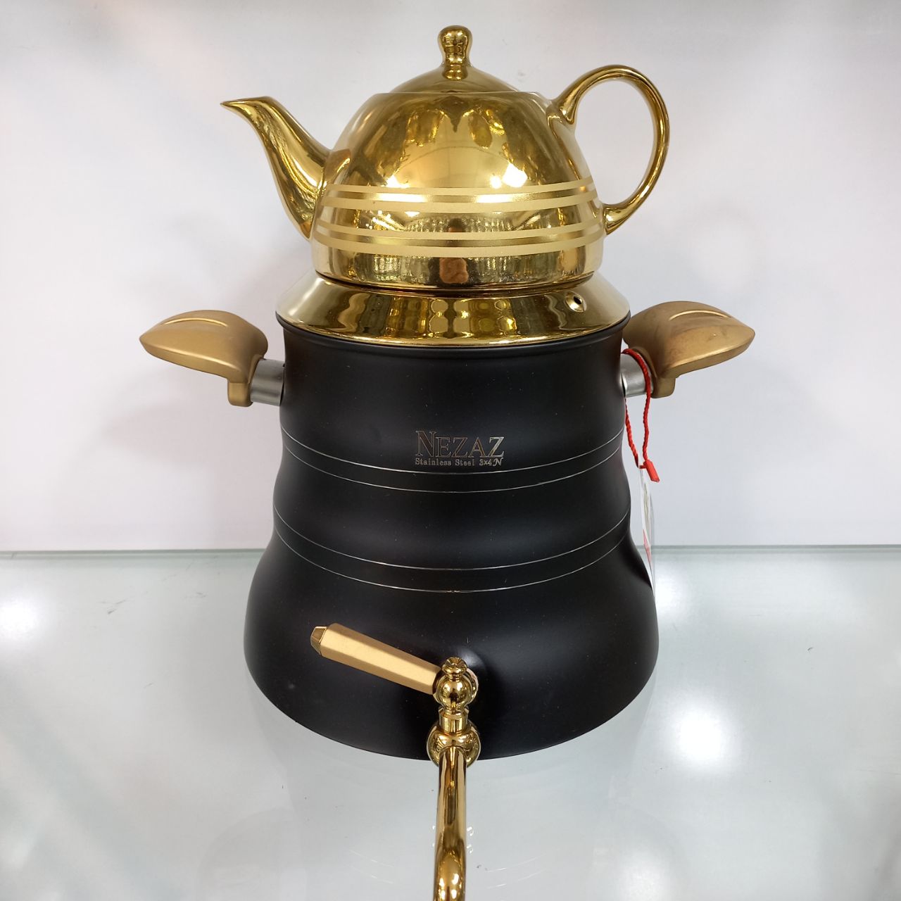 کتری قوری رو گازی نزاز ۵ لیتری کد ۳۰۲۶ مشکی طلایی